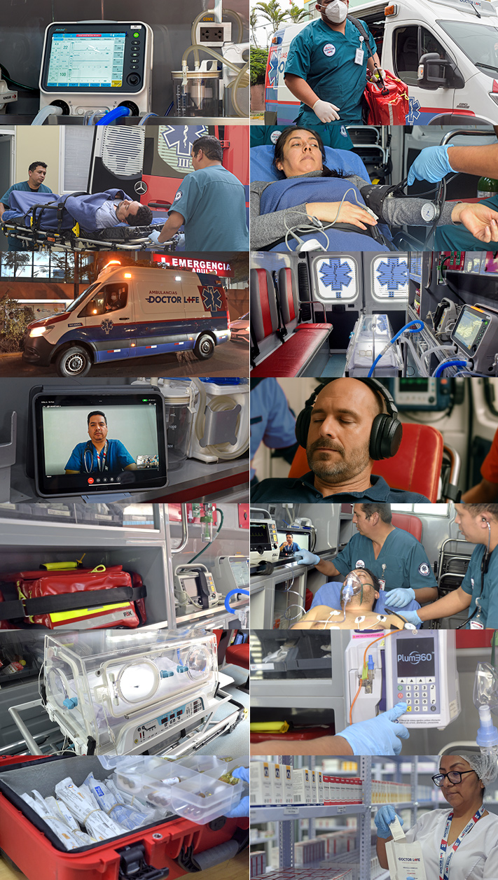 Certificaciones BLS y PHTLS, entrenamientos trimestrales en soporte avanzado de vida y manejo de trauma, un equipo de alta calidad y disposición, bajo la dirección médica del Dr. Renzo Lavado.